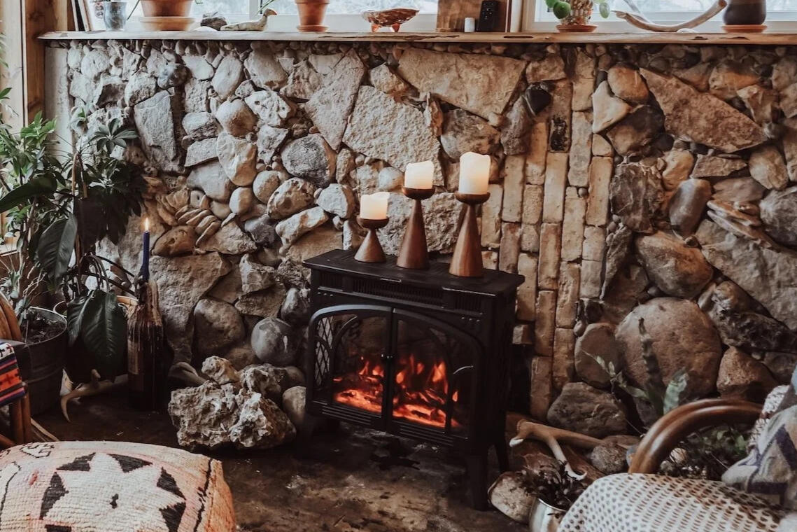 Mother Lion is a one-level home with a bright four-season room with lounging couches and a fireplace, a lush dining room, a cozy living room with a fireplace, two bathrooms - one with a clawfoot tub and shower, a fully functioning kitchen, and landscaped backyard with a hot tub, and a sauna. Mother Lion holds plenty of incense, linens and bedding, robes, towels, sandals, spring water, street parking, and one garage parking spot available with advance notice.